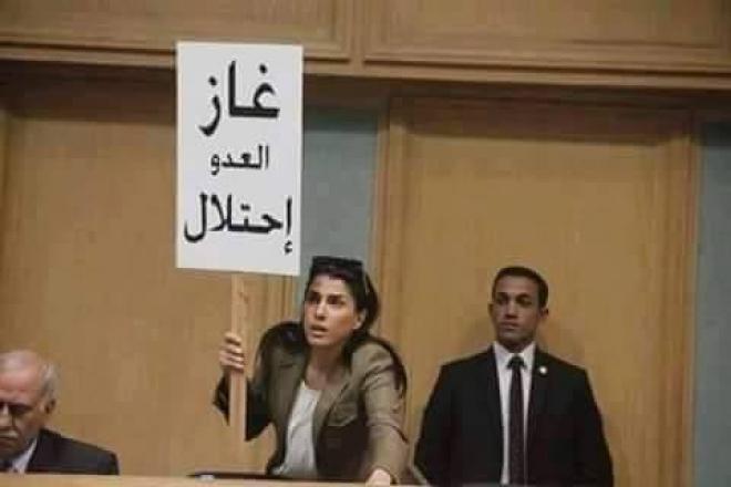 وظهرت النائب الفايز في صورة وهي ترفع داخل قاعة البرلمان الاردني لافته كتب عليها "غاز العدو احتلال" وهو شعار تردده الفعاليات الاردنية المعارضة لاتفاقية الغاز مع اسرائيل.