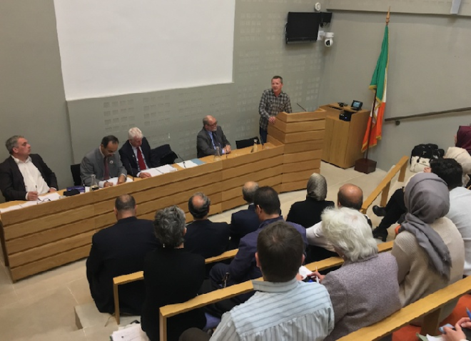 وتحدث في الندوة كل من النائب "ريتشارد بويد" من تحالف "الناس قبل الأرباح" والنائبين " إنجيس سنوديغ " و " شون كرو" من حزب الشين فين، بالإضافة لرئيس منتدى التواصل الأوروبي زاهر بيراوي والدكتور عزام التميمي – الإعلامي والمفكر الفلسطيني، كما شارك عبر السكايب من غزة الدكتور أحمد يوسف المستشار السابق لرئيس الوزراء الفلسطيني السابق إسماعيل هنية. وشارك في النقاش عدد آخر من النواب وبعض أعضاء مجلس الشيوخ الإيرلندي.