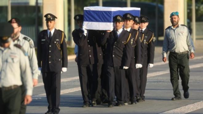 ولم تشهد إسرائيل أي جنازة على مستوى دولي مماثل منذ جنازة رئيس الوزراء السابق إسحق رابين عام 1995 الذي اغتيل على يد ناشط في اليمين المتطرف معارض بقوة لاتفاق أوسلو الموقع بين إسرائيل ومنظمة التحرير الفلسطينية.