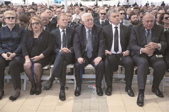 ولاحظت مصادر إسرائيلية أن عباس كان الزعيم العربي الأبرز الذي حضر جنازة بيريز التي حضرتها وفود من دول عربية بينها مصر والأردن والمغرب. وقد أثارت مُشاركة الوفود العربية في جنازة بيريز انتقادات حادة في أوساط عربية مُخالفة خصوصاً على وسائل التواصل الاجتماعي. وزادت هذه الانتقادات بعدما ظهر أن مشاركة أبو مازن ومكان جلوسه في حفل التأبين كان موضع خلاف وصراع داخل الكيان الإسرائيلي.
