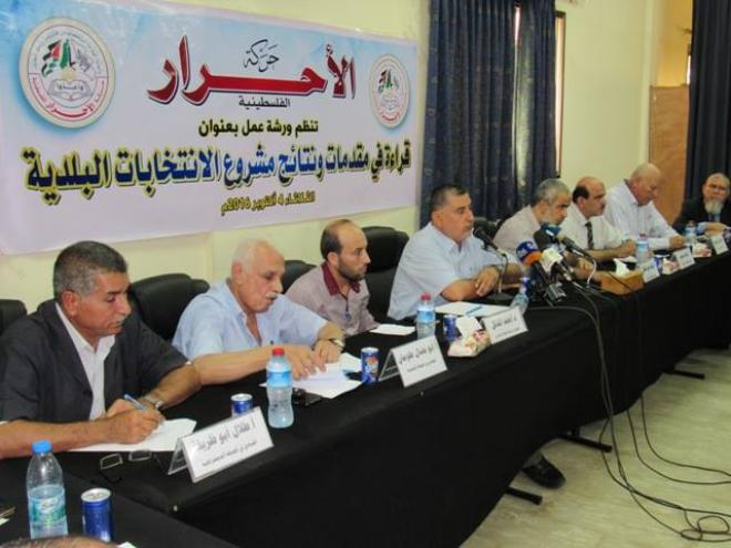 و قال الأمين العام لحركة الأحرار الفلسطينية خالد أبو هلال إن" قرار إجراء الانتخابات البلدية منذ صدوره كان غير جدي ولا يتعدى المناورة السياسية", محذرا من تداعيات خطيرة قد يعكسها قرار المحكمة العليا في رام الله بإجراء الانتخابات المحلية في الضفة المحتلة دون قطاع غزة والقدس قائلا "استثناء غزة من الانتخابات هو ليس انقلاب على شعبنا وإرادة الفصائل كافة التي وقعت على ميثاق شرف لضمان سيرها واحترام نتائجها, بل انقلاب على كل القيم الفلسطينية واتفاقيات المصالحة ويؤسس لاستمرار وتعزيز الانقسام, مشيرا بأن المؤسسة القضائية قد سقطت وبان عوَرُها بهذا القرار المُملى عليها." كما قال