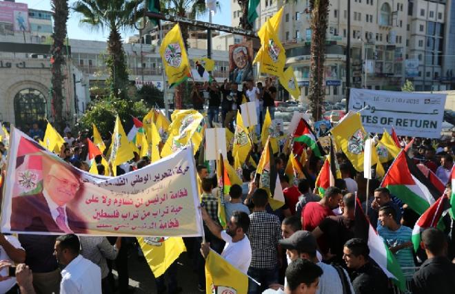 رام الله.. مسيرة مبايعة للرئيس أبو مازن بالتزامن مع فض اعتصام ضده