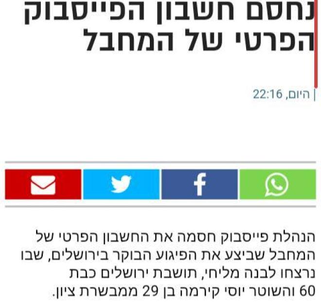 قناة عبرية :"فيسبوك" استجاب لطلب حجب حساب منفذ عملية القدس