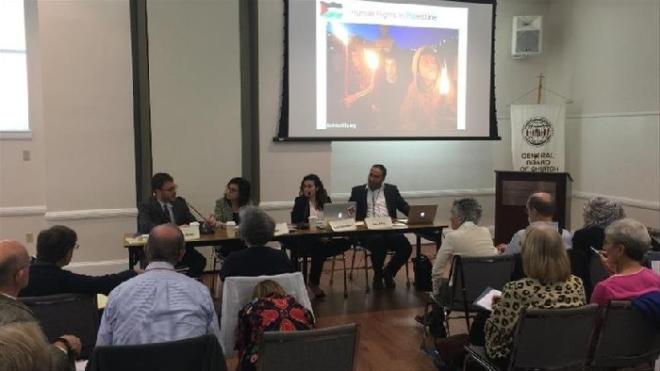 وعقد الناشط الفلسطيني في مجال حقوق الإنسان، عيسى عمرو، والباحثة نور عرفة من شبكة السياسات الفلسطينية (مقرها واشنطن)، موجزا صحفيا، امس الاثنين، قبيل زيارة ممثلي الولايات الأمريكية بالكونغرس.