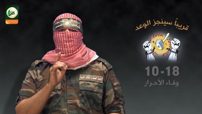 وقال أبو عبيدة في كلمة مقتضبة له بمناسبة الذكرى الخامسة لصفقة "وفاء الأحرار" :" العدو يتهرب من دفع الاستحقاقات لصفقة جديدة، ويحاول نشر الأكاذيب ويضلل جمهوره بدعاوى ساقطة وهذا عهدنا به"، مضيفاً أن "هذا السلوك لن يغير من واقع الأمر شيئاً ولن ينفعه هذا التهرب طال الزمان أم قصر وإن عامل الزمن لن يكون أبداً في صالح العدو إن هو توهم ذلك."