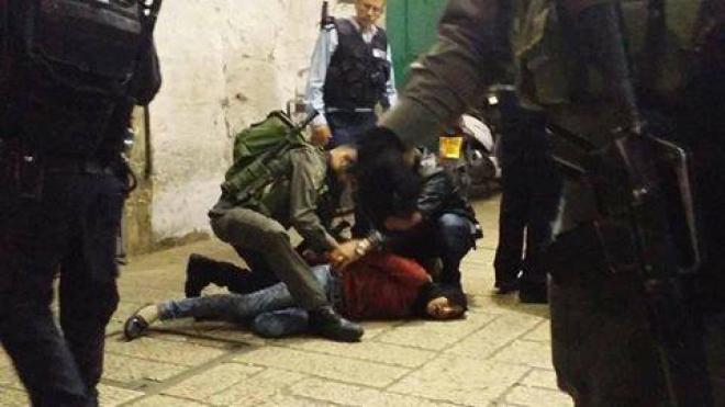 وقال إن الجنود ضربوه بأيديهم وأرجلهم على وجهه ورأسه، ثم ضربوه بالعصي على قدميه بكل قوتهم حتى أنه لم يستطع الوقوف أو المشي من شدة الضرب، فقام الجنود بجره إلى مركز شرطة (القشلة) بالقدس في باب الخليل، وهناك أدخلوه إلى الحمام، ودخل عليه 3 جنود أخذوا يضربونه بأقدامهم وبالعصي على ركبتيه وعلى ظهره ورأسه.