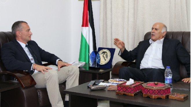 ووضع الرجوب ضيفه في صورة مجمل الانتهاكات الإسرائيلية المتواصلة ضد أبناء الشعب الفلسطيني وممتلكاته ومقدساته الإسلامية والمسيحية، مشيرا الى عدم احترام وانصياع إسرائيل لمطالب وقرارات المجتمع الدولي والأمم المتحدة على صعيد وقف الاستيطان، وتقويض عملية السلام وحل الدولتين.