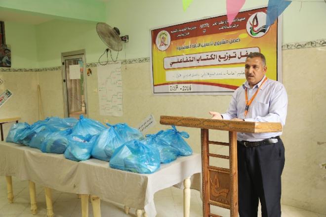 وزع مركز بناة الغد التابع لجمعية الثقافة والفكر الحر كتاب العلوم التفاعلي الفصل الاول ،على حوالى ثلاثة الاف طالب وطالبة في الصف السابع من مديرية غرب خان يونس.