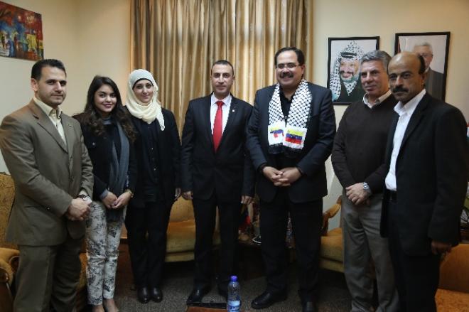 التقى وزير التربية والتعليم العالي الفلسطيني صبري صيدم، اليوم الأربعاء، سفير فنزويلا لدى فلسطين ماهر طه، والقنصل الفنزويلي نائلة زايد والوفد المرافق لهما؛ للتحضير لصياغة اتفاقية تعاون مشتركة بين الدولتين.
