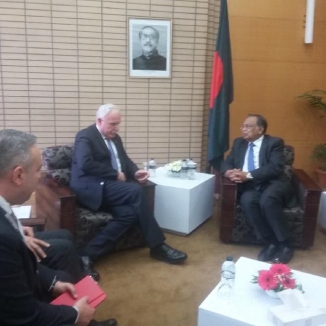 كما بحث المالكي مع نظيره البنغالي على هامش اعمال القمة التاسعة للهجرة والتنمية، سبل تعزيز التعاون المشترك حيث تم الاتفاق على عقد اللجنة المشتركة بين البلدين واجراء مشاورات سياسية والتقدم باتجاه تطوير التعاون التنموي من خلال مذكرة تفاهم تتضمن مجالات التعاون الثنائي المشترك وتقديم مقترح فلسطيني بهذا الخصوص بما يتضمن ايضاً قيام الوكالة الفلسطينية للتعاون الدولي باقتراح عدد من المشاريع التي تقوم على تبادل الخبرات في مجالات تنموية تعكس اهتمامات واولويات الطرفين.