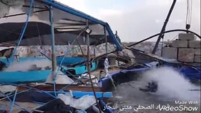 اثار الدمار الذي خلفته الرياح في بحيرة "فش فرش" لتربية الأسماك على شاطئ بحر مدينة خان يونس جنوب قطاع غزة. اعداد الصحفي مثنى النجار.