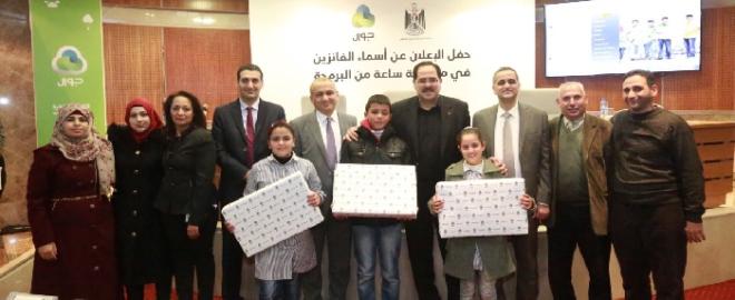 أعلنت شركة جوال عن أسماء الطلبة الفائزين بمسابقة " ساعة من البرمجة، والتي تنفذها للسنة الثالثة على التوالي وبالشراكة مع وزارة التربية والتعليم العالي، وبتنفيذ من مؤسسة مجموعة الاتصالات للتنمية المجتمعية الذراع التنموي لمجموعة الاتصالات الفلسطينية بشركاتها ( جوال ، شركة الاتصالات، حضارة، ريتش ، بالميديا)، وذلك خلال مراسم حفل الاعلان عن اسماء الطلاب الفائزين في المسابقة،والذي عُقد في شركة جوال برام الله، وبحضور وزير التربية والتعليم العالي صبري صيدم، ووزير الاتصالات وتكنولوجيا المعلومات علام موسى والرئيس التنفيذي لمجموعة الاتصالات الفلسطينية عمار العكر، ومدراء من وزارة التربية والتعليم العالي ووزارة الاتصالات وتكنولوجيا المعلومات ومجموعة الاتصالات الفلسطينية .