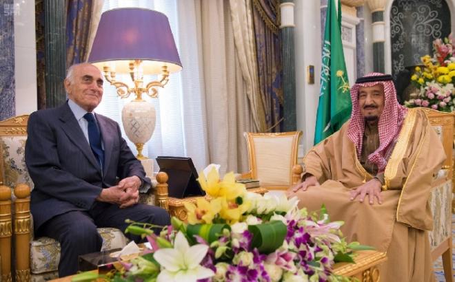 استقبل خادم الحرمين الشريفين الملك سلمان بن عبدالعزيز آل سعود في مكتبه بقصر اليمامة في الرياض اليوم الاربعاء، رئيس مجلس إدارة صندوق القدس منيب رشيد المصري يرافقه أعضاء مجلسي الإدارة والأمانة العامة لصندوق ووقفية القدس.