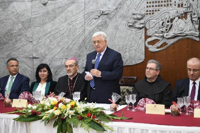 ورحب أبو مازن بضيوف فلسطين "الذين شاركونا في احتفالات أعياد الميلاد المجيدة، السفير الأردني ممثلا عن أخينا وشقيقنا جلالة الملك عبد الله الثاني السباق دوما والحريص على المشاركة في هذه الاحتفالات، وممثل مالطا الذي تربطه بنا علاقات تاريخية وصداقة".