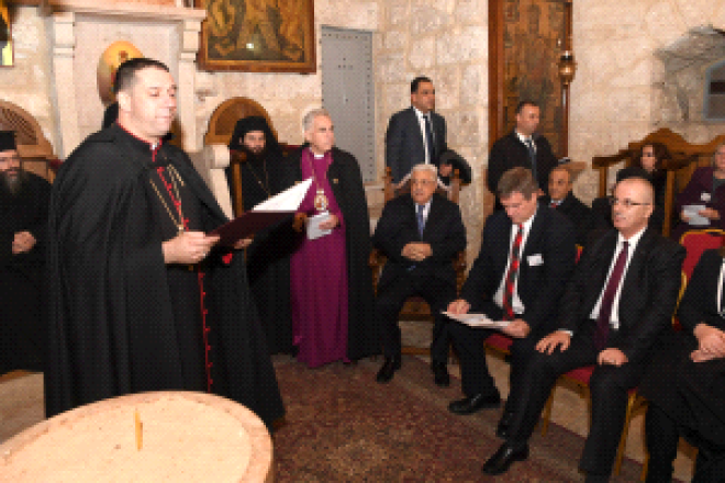 حضر الرئيس الفلسطيني محمود عباس(أبو مازن)، قداس منتصف الليل لطائفة الأنجليكان في دير الروم الأرثذوكس، بمدينة بيت لحم.