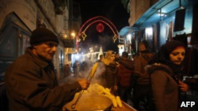 أمضى وزير الشؤون الخارجية الإيطالية، انجلينو ألفانو، ليلة عيد الميلاد في كنيسة المهد ببيت لحم.