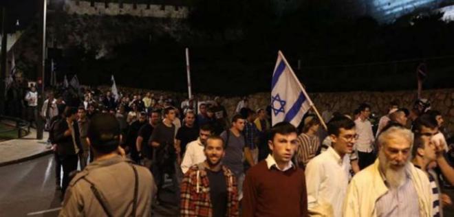 وأضافت أن المستوطنين رفعوا خلال المسيرة الأعلام الإسرائيلية، ورددوا الشعارات والهتافات العنصرية.