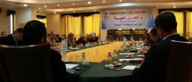 قال عضو المكتب السياسي لحركة حماس خليل الحية, إن حكرته "لا تسعى لتشكيل أي إطار بديل عن منظمة التحرير الفلسطينيية من منطقة إيمانها بمبدأ التدافع السياسي".