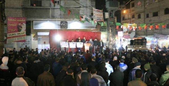وانطلقت التظاهرة من أمام مسجد الخلفاء الراشدين بمخيم جباليا شمال قطاع غزة وجابت شوارع المخيم، وهتف المشاركون بعبارات تندد بقرار الاحتلال القاضي بتهجير سكان قرية أم الحيران وتحيي صمود الأهالي.