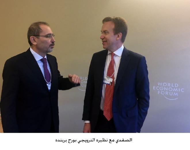 وأضاف الصفدي في تصريحات صحفية أوردتها وكالة "بترا" الأردنية، وأدلى بها على هامش مشاركته بأعمال منتدى دافوس، إن "أولوية القضية الفلسطينية بالنسبة للأردن لن تتغير، ونحن نؤمن أنه لا استقرار ولا أمان في المنطقة إلا بحل عادل على أساس حل الدولتين، الذي يؤدي إلى قيام الدولة الفلسطينية وعاصمتها القدس الشرقية، وعلى المجتمع الدولي العمل معنا لإحياء ذلك".