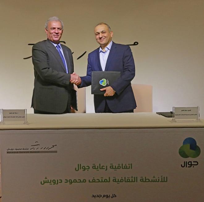 وقع اليوم في متحف محمود درويش د. زياد أبو عمرو، رئيس مؤسسة محمود درويش و عمار العكر، الرئيس التنفيذي لمجموعة الاتصالات الفلسطينية، اتفاقية لرعاية الأنشطة الثقافية التي تنفذها مؤسسة محمود درويش من قبل شركة الاتصالات الخلوية الفلسطينية (جوال)، ونصت الاتفاقية على رعاية الأنشطة الثقافية التي تنفذها المؤسسة على مدار العام 2017.