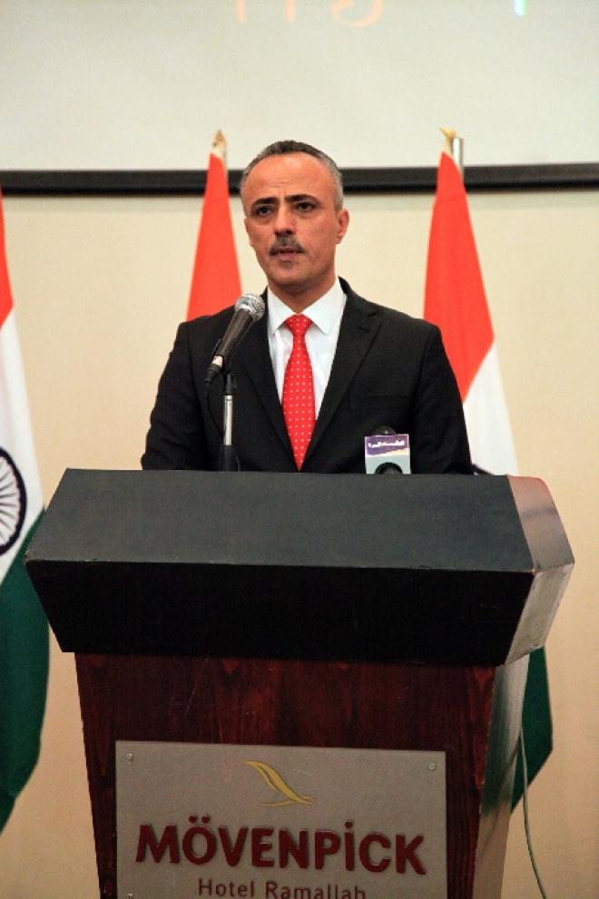 وقال: "يشرفني أن أشارككم الاحتفال في اليوم الجمهوري للهند، وأبرق من خلالكم للشعب الهندي الصديق ورئيس جمهورية الهند براناب موخرجي تحيات وتهاني سيادة رئيس دولة فلسطين محمود عباس، ودولة رئيس الوزراء، وكل شعبنا الفلسطيني بهذه المناسبة المجيدة".