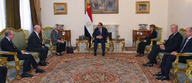 جاء ذلك خلال استقبال السيسي اليوم الخميس، لوفد من معهد الشرق الأوسط الأمريكي في واشنطن برئاسة ويندي تشامبرلين مديرة المعهد وعضوية عدد من السفراء الأمريكيين السابقين من بينهم "فرانك ويزنر" السفير الأمريكي الأسبق بالقاهرة، والدكتور بول سالم نائب مديرة المعهد، وذلك بحضور فايزة أبو النجا مستشارة رئيس الجمهورية لشئون الأمن القومي.