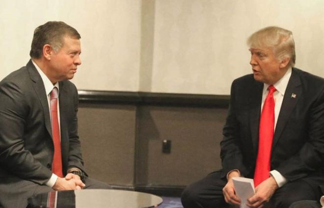 والتقى ترامب بالعاهل الأردني في فندق "هيلتون واشنطن"، حيث كان يشارك في إفطار الصلاة الوطنية بحسب ما ذكرته CNN، ووصفت المصادر المحادثات التي جرت في اللقاء بأنها كانت "جيدة جدا".
