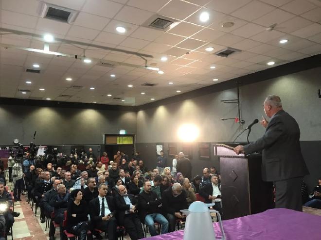 وتابع بركة، ولكن لننتبه الى أن اليمين الإسرائيلي على علاقات وثيقة مع هذه الحركات الفاشية في أوروبا، وقبل أيام استقبل حزب الليكود أحد مسؤولي الحزب العنصري في فرنسا. ونحن لسنا بحاجة الى قرائن كي نثبت أن إسرائيل تتقدم بخطى ثابتة نحو النظام الفاشي. ونحن لا نريد دب الرعب بين جماهيرنا، ولكن علينا أن نؤكد أن ظهرنا الى الحائط، ولم يعد مكان نتراجع اليه، وليس أمامنا سوى أن نتقدم. ونحن ليس لدينا دبابات ولا راجمات، ولكننا لسنا عُزّل، فنحن أصحاب الحق والوطن والضمير، نحن نريد أن نعيش مكرّمين معززين شامخين، وفي هذه المعركة ليس أمامنا أي امكانية للتراجع. وحيا الوقفة الجماهيرية الواسعة بعد جرائم التدمير في قلنسوة وأم الحيران.