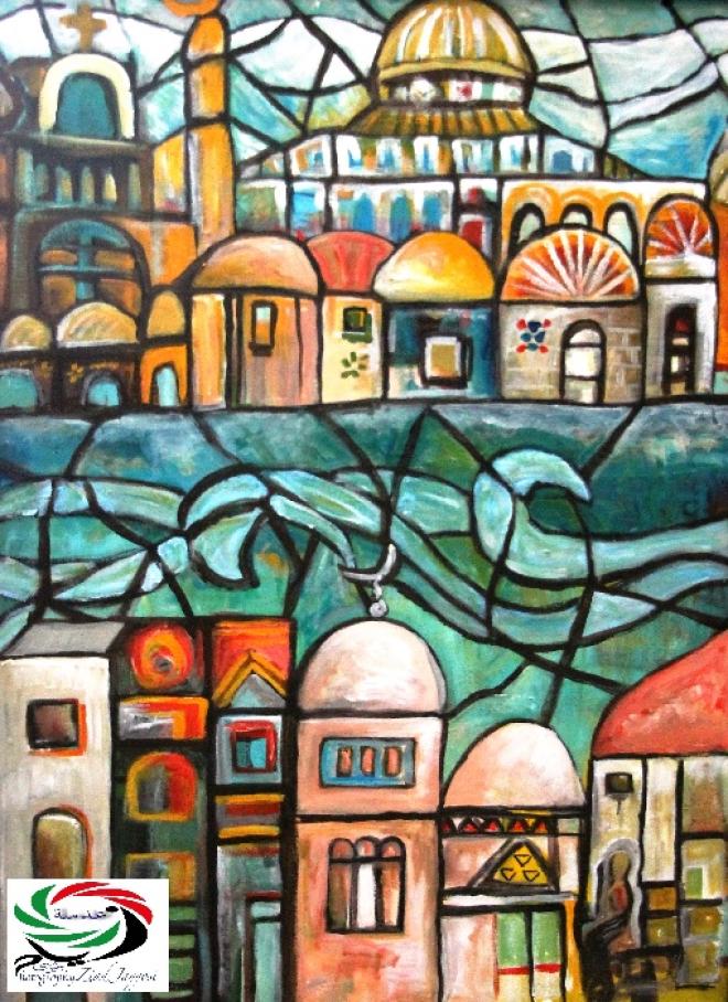 الفنانة التشكيلية نوال عبد الرحيم، قدمت تسعة أعمال، كل ثلاثة منها تشكل فكرة متكاملة. والفنانة نوال لم تدرس الفن، ولكنها امتلكت الموهبة، واعتمدت على نفسها ومشاهداتها بتطوير موهبتها الفنية، إضافة على نصائح وإرشادات من فنانين لهم وجود قوي في الساحة الفنية في الأردن. ويتميز أسلوب الفنانة باللجوء لأسلوب الزخرفة في إبداعاتها الفنية، وسبق لي أن شاهدت لها العديد من الأعمال في معارض مشتركة. وفي معرض زها نلاحظ أنها في المجموعة الأولى قدمت المكان بطريقة جميلة، وقريبة إلى النفس، سواء للكبار أو الصغار، فقدمت اللوحات التي تصور القدس بتجريدية للمكان مع روح انطباعية وواقعية، واستخدمت ألوان الزخرفة بطريقة ملفتة للنظر، فتمازج الأقصى بالمآذن والبيوت التراثية، وتمازج الإنسان من خلال بعض المشاهد للمرأة الفلسطينية بثوبها التقليدي ورجل باللباس التراثي، وطفل صغير في لوحة، وفي لوحتين كانت المرأة الفلسطينية، وكان التمازج جميلاً حتى كاد يصل لدرجة الانصهار، بينما في المجموعة الثانية لجأت لتجريد الأمكنة بشكل كبير مع استخدام العديد من الرموز، بينما في المجموعة الثالثة، ومع الأسلوب الزخرفي نفسه باللون والأسلوب قدمت ثلاث لوحات قريبة جداً من روح الأطفال، فظهرت فيها الطيور في لوحة، والأطفال الرضع المحلقين كالفراشات في لوحة أخرى، ولوحة ثالثة استخدمت فيها أشكال الفرح من طيور وأشخاص وأشكال متنوعة، ويلاحظ في هذه المجموعة استخدام اللون الأزرق الفيروزي بجمالية خاصة، وهو لون قريب للروح جداً، وبالتالي حين نقيّم تأثير اللوحات على روح الأطفال سنجد تأثيراً إيجابياً يشد الطفل للوطن المغتصب والأقصى السليب، ولجمال الأمكنة وجمال الطبيعة، وهذه تأثيرات مهمة اعتمدتها الفنانة باختيار هذه المجموعة من اللوحات لتتناسب مع طبيعة المعرض والحضور من الأطفال.