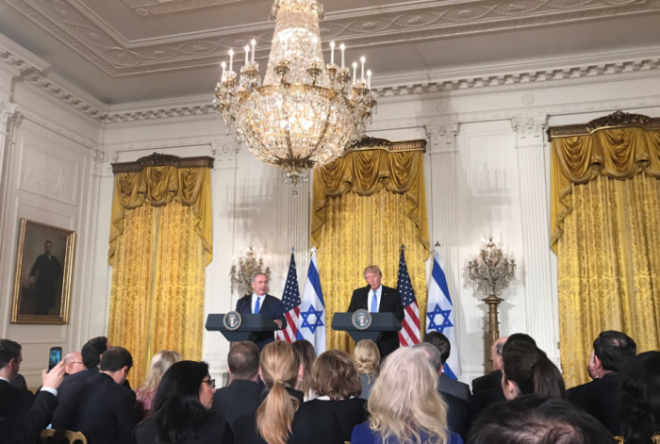 وأضاف الرئيس ترامب في مؤتمر صحفي مشترك مع رئيس الوزراء الاسرائيلي بنيامين نتنياهو في واشنطن مساء الأربعاء، أن حل الدولتين ليس السبيل الوحيد من أجل السلام.