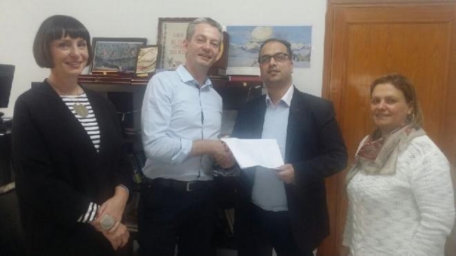 وقدم منسق لجنة دعم الصحفيين في فلسطين صالح المصري المذكرة لمدير اللجنة الدولية للصليب الاحمر في الاراضي الفلسطينية جيلو ديغو بحضور الناطقة باسم الصليب الاحمر سهر زقوت والمستشار فايز الاقرع و...