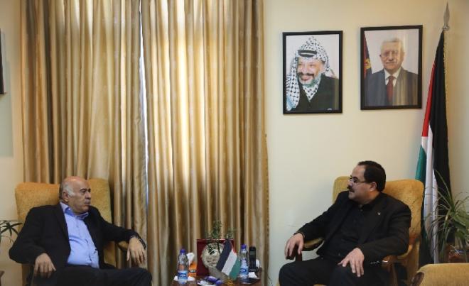 بحث وزير التربية والتعليم العالي صبري صيدم واللواء جبريل الرجوب رئيس اللجنة الأولمبية الفلسطينية آفاق التعاون للارتقاء بواقع الرياضة المدرسية.