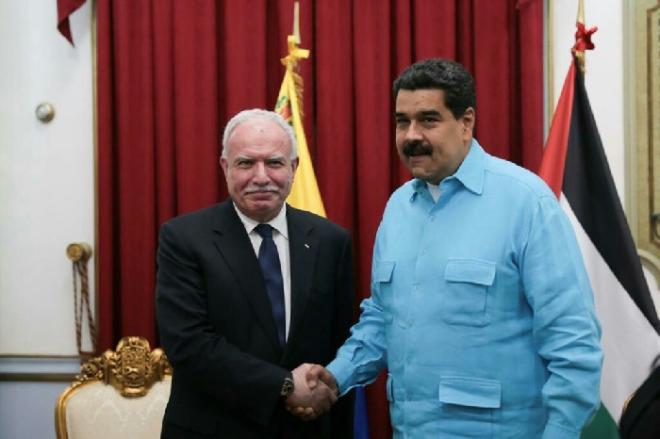 وحيّا الرئيس مادورو لدى استقباله وزير الخارجية رياض المالكي، في القصر الجمهوري "ميرافلوريس"، الشعب الفلسطيني وبطولاته ونضالاته المشرفة في التصدي للصهيونية والامبريالية العالمية، وطلب نقل تحياته الى الرئيس محمود عباس.