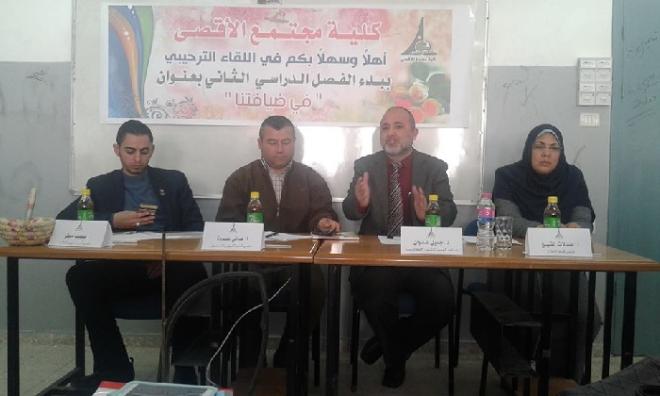 نظمت كلية مجتمع الأقصى - قسم العلاقات العامة والإعلام لقاءً ارشادياً أكاديمياً بمناسبة بدء الفصل الدراسي الجديد بعنوان "في ضيافتنا"، تمحور حول توضيح الأمور الأكاديمية التي ينبغي أن ينتهجها الطالب في مسيرته التعليمية.
