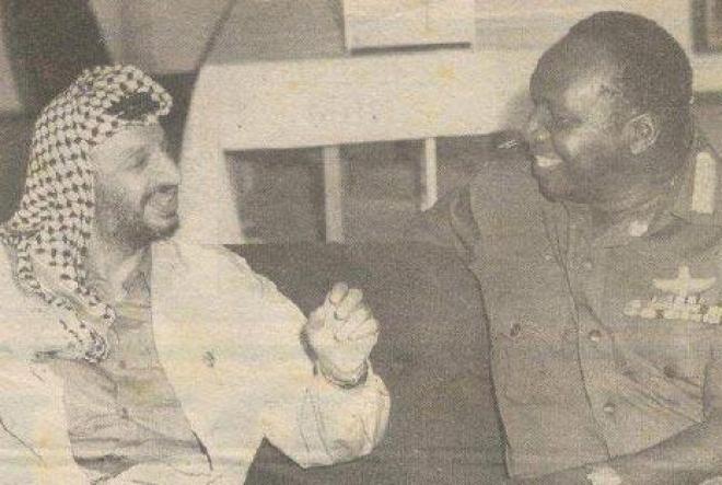 وقد نَسَجَ تَحالُفَاً قَوياً مع الثورة الفلسطينيّة التي كانت تَبحَثُ عن حُلفاء تُعزّز بهم قُوتها وتعمل مَعهم على عَزل الاحتلال وإضعافِ مكانته الإقليمية والدُّولية، فكانت أوغندا مَحطّة الانطلاق والتَّحول الأوّل في أفريقيا. تَشجَّعت بَعضُ الدّول بَعدَ قرار عيدي أمين، وفتحت أبوابها للثورة الفلسطينيّة وَجمّدت عَلاقاتها مع الاحتلال الذي سَبقَ لَهُ التّوغُل دبلوماسياً في أفريقيا (4). وكانت سَفارة الثورة الفلسطينيّة في أوغندا من أهمّ السفارات وأقربها إلى عيدي أمين، لدرجة أنّ السفير الفلسطينيّ خالد الشيخ (5) استُشير في أمور سياسيّة كثيرة، وربُما في تَعيين بعض الوُزراء في البلاد (6). وكان طاقم السَفارة كاملاً يُدعَى في المُناسبات الرّسمية المُهمة، حيث كان عيدي أمين يُسارع للترحيب بأفراد الطاقم وَسُؤالهم عن "أخيه" ياسر عرفات.