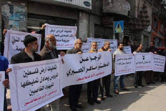 وقد ألقى عضو المكتب الاعلامي لحزب التحرير في فلسطين خالد سعيد كلمة اتهم فيها السلطة بأنها "تذرف دموع التماسيح على الاستيطان بينما تقوم بتمليك وقف أوقفه الرسول صلى الله عليه وسلم للكنيسة الروسية التي لها تاريخ أسود في بيع ممتلكاتها ليهود، وهو ما قد يؤدي الى الاستيطان في أرض وقف تميم الداري." كما قال