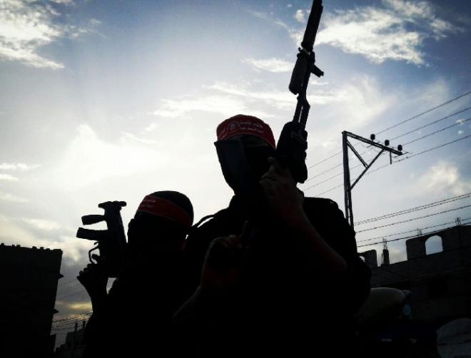 عرض عسكري لكتائب المقاومة الوطنية الجناح المسلح للجبهة الديمقراطية لتحرير فلسطين في محافظة رفح جنوب قطاع غزة بمناسبة الذكرى ال48 لانطلاقة الديمقرطية.