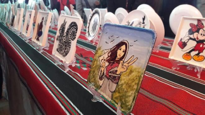 وتنوعت المُنتجات الفنية، ما بين لوحات خشبية وورقية، وقطع خشبية مُختلفة الأحجام والأشكال ومُتعددة الأغراض، وسيراميك بأشكال متنوعة جذابة، ولوحات تطريز تُحاكي التراث الفلسطيني، ورسم على الفسيفساء، الذي أضاف للمعرض صبغة فنية.