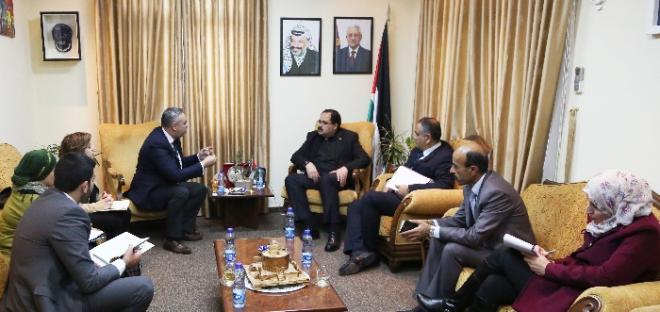 جاء ذلك خلال لقائه، اليوم الاربعاء، مع وفد الوكالة الفلسطينية للتعاون الدولي "بيكا"، والذي ضم مديرها العام عماد الزهيري، ومديرة البرامج ديما العرقان، ومسؤول برنامج في الوكالة جليل القرع، ومحللة البرامج في "UNDP" مهى أبو سمرة، بحضور وكيل الوزارة بصري صالح، ومدير عام العلاقات الدولية والعامة نديم سامي.