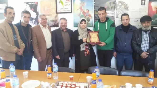 وكرمت اللجنة الوطنية العليا لعودة اللاجئين "سنعود" نسرين ذوقان مديرة دائرة شؤون اللاجئين في شمال الضفة الغربية وعضو اللجنة الوطنية العليا لعودة اللاجئين "سنعود" على نشاطها المميز في الخدمة الوطنية التي تقدمها في المحافظات الشمالية وياتي هذا التكريم بمناسبة الثامن من اذار والتاكيد على دور المراة الفلسطينية انها تعمل من اجل القضية الفلسطينية وان المرأة قادرة على العمل في كافة المجالات