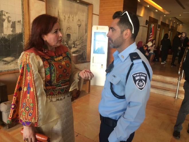 وألصقت قوات الاحتلال أمر المنْع، مقعا من وزير أمن الاحتلال جلعاد أردان، على بوابة الفندق، في حين وقعت مشادة كلامية بين رئيسة الجمعية زهور أبو ميالة وضابط الاحتلال، والذي أكد أن المنع جاء بسبب ما أسماه تبعية المؤتمر للسلطة الفلسطينية.