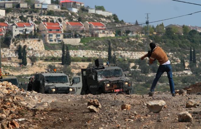 أصيب اليوم الجمعة، مستوطنان بجراح طفيفة، جراء رشقهم بالحجارة من قبل شبان فلسطينيين في مخيم قلنديا شمال مدينة القدس المحتلة.