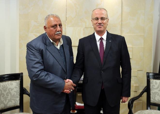 استقبل رئيس الوزراء الفلسطيني رامي الحمد الله، اليوم الأحد في مكتبه برام الله، الأسير المحرر إبراهيم المسالمة، والذي قضى 17 عاما في سجون الاحتلال، بحضور أمين سر اللجنة المركزية لحركة فتح اللواء جبريل الرجوب.