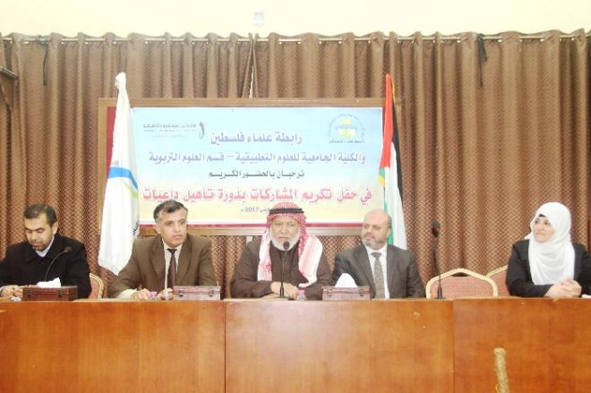 اختتمت رابطة علماء فلسطين بالتعاون مع قسم العلوم التربوية بالكلية الجامعية للعلوم التطبيقية دورة تأهيل داعيات، بمشاركة 52 طالبة وذلك في قاعة الأنشطة بمبنى الطالبات بالكلية.