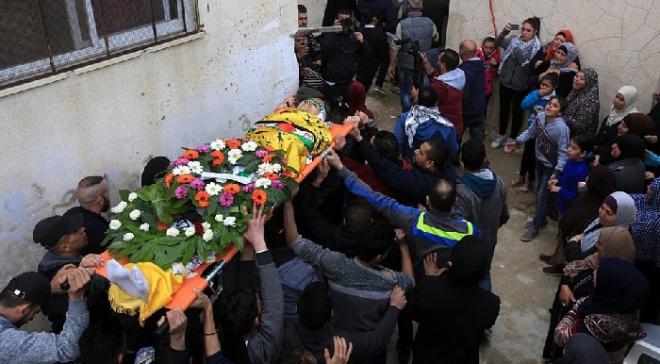 تشييع جثمان الشهيد محمد حطاب في مخيم الجلزون