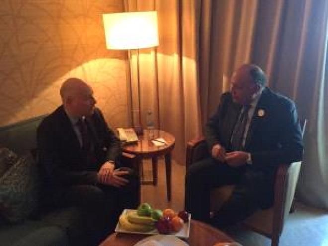 بحث وزير الخارجية المصري سامح شكري، مع الممثل الخاص للرئيس الأمريكي لشؤون المفاوضات الدولية جيسون جرينبلات، مستجدات القضية الفلسطينية ومستقبل عملية السلام في الشرق الأوسط.