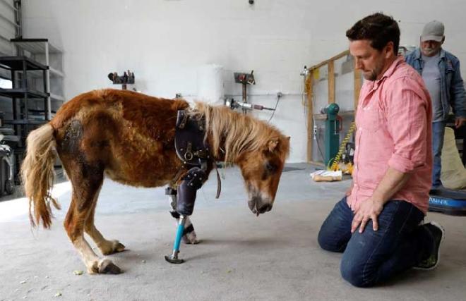رجل صناعية لحصان صغير في مركز لرعاية الحيوانات في امريكا