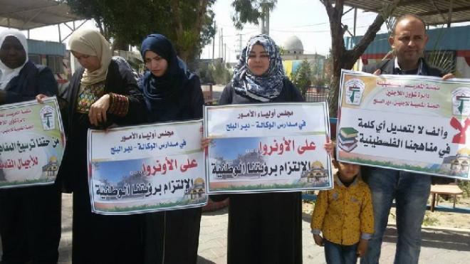 وكانت مخيمات وسط قطاع غزة قد شهدت في وقت سابق فعاليات احتجاجية على محاولة وكالة الغوث تعديل المنهاج الفلسطيني وطمس الهوية الفلسطينية.