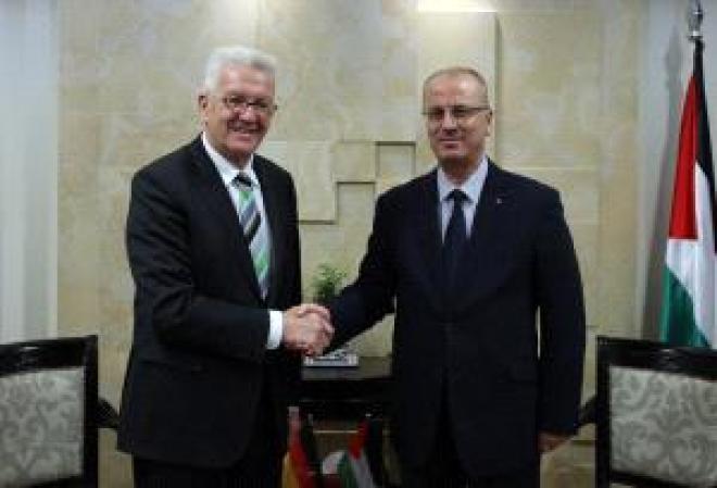 بحث رئيس الوزراء رامي الحمد الله، مع رئيس وزراء ولاية "بادن فورتمبيرغ" الألمانية وينفريد كريتشمان، بحضور ممثل ألمانيا لدى فلسطين بيتر بيرفيرث، سبل تعزيز التعاون، خاصة في مجال التعليم، والتدريب المهني.
